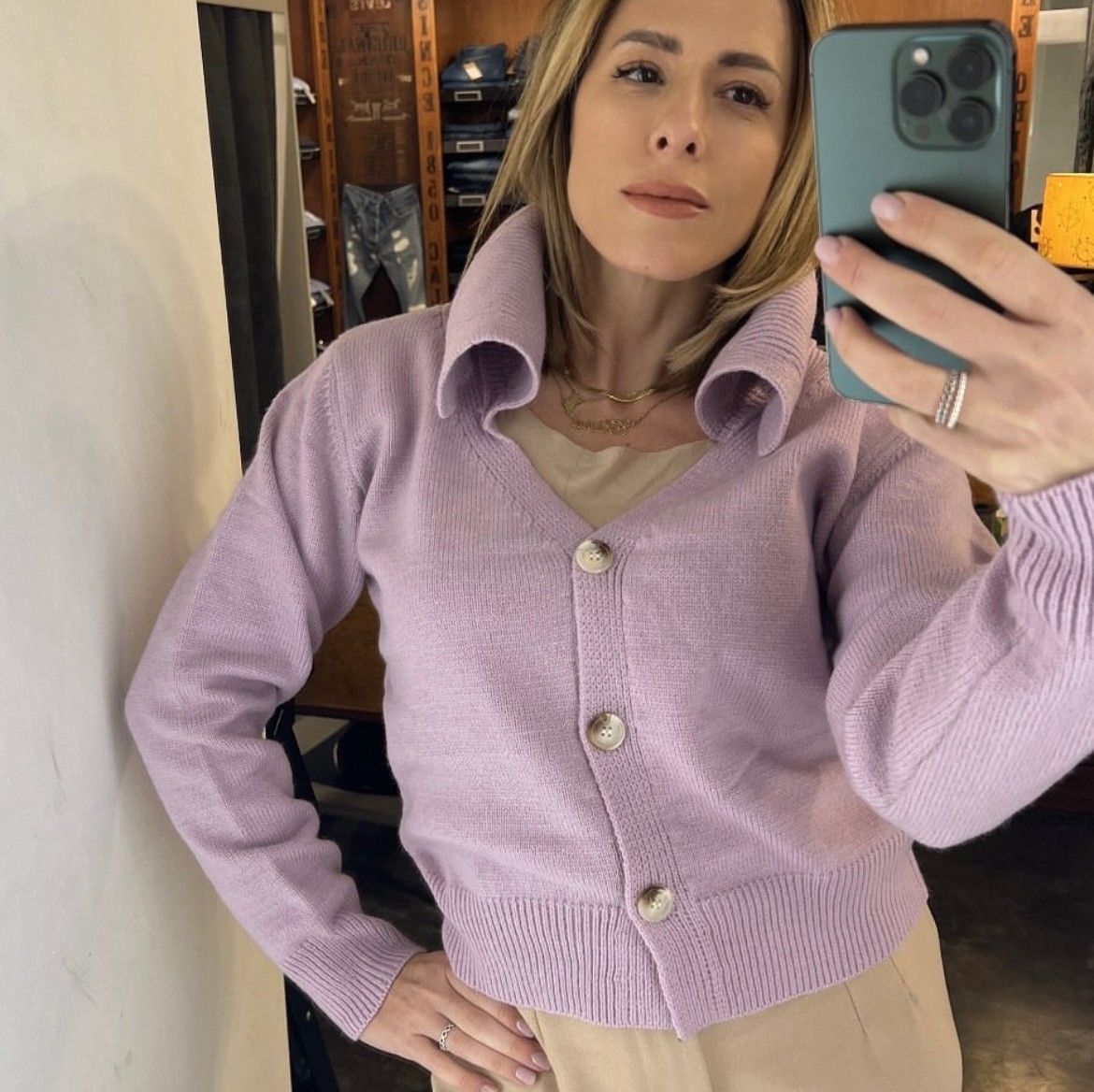 Compania Fantastica – Cardigan lilla collo reverse