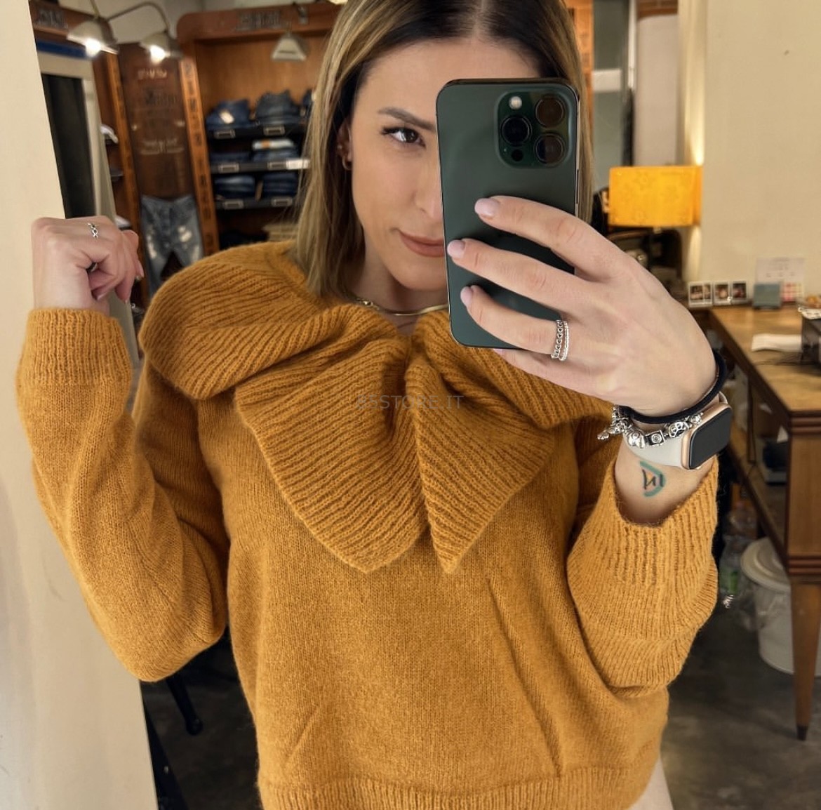 Compania Fantastica – Maglione collo ruches senape