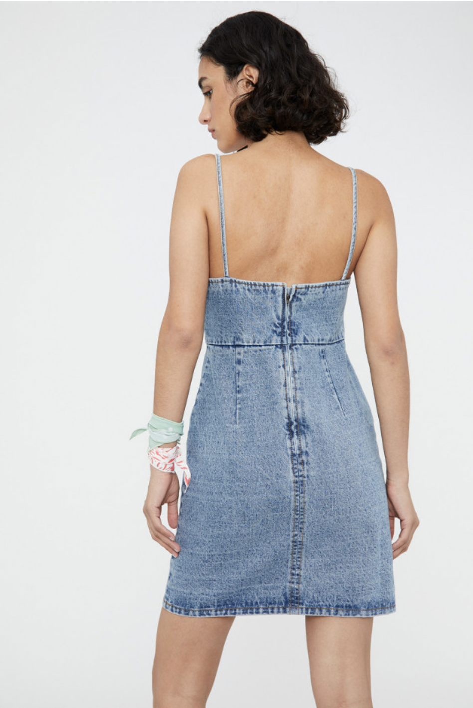 Abiti e Tutine, Donna, Wild PonyAbito midi in jeans. Con scollo dritto e bretelline. La modella indossa la taglia S.